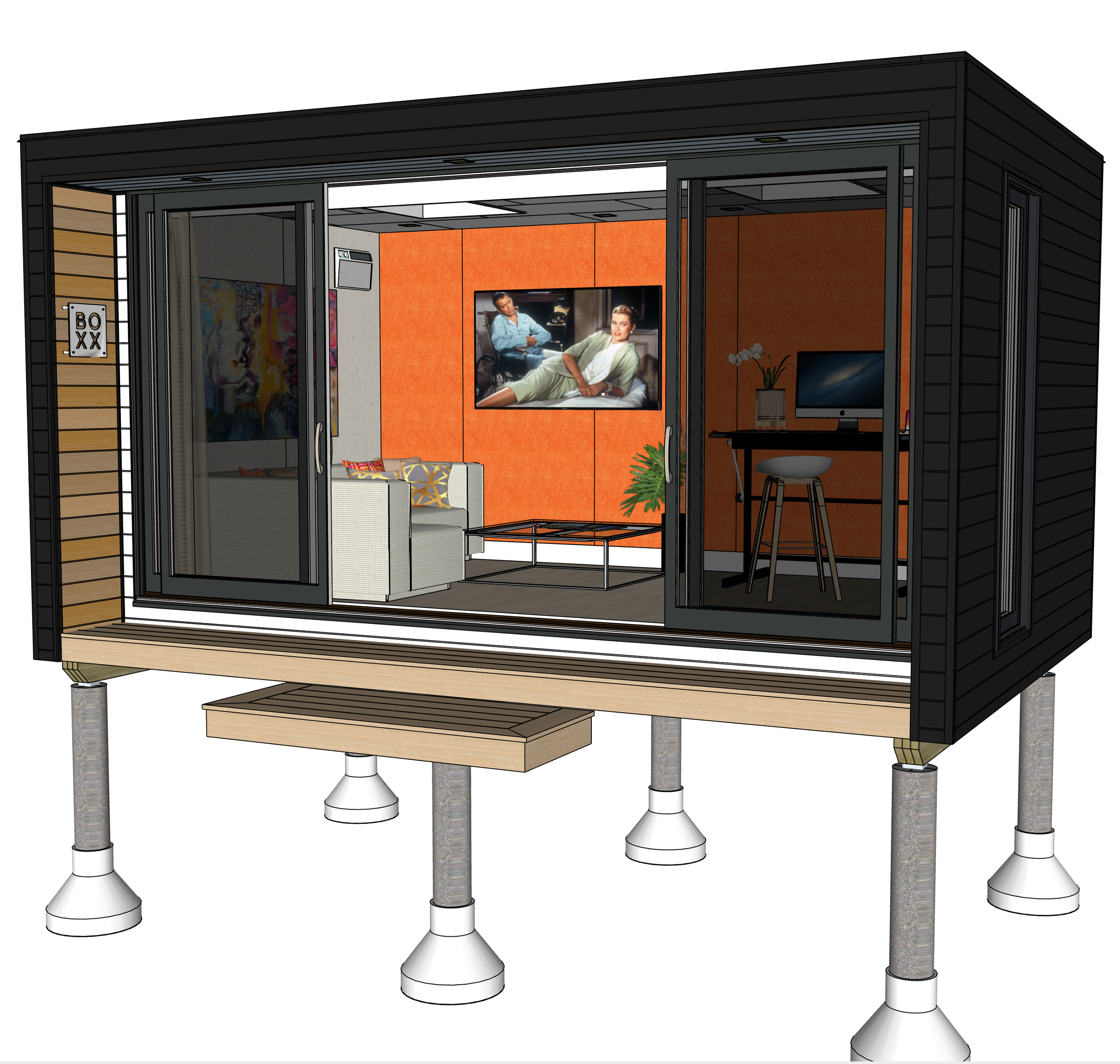 The future of work looks gorgeous when it’s from your own Boxx Model F home office studio. Create your own dedicated work, exercise, art, or hang-out space. Whether you work as a writer, technologist, therapist, or yoga instructor, the Boxx Model F is a spacious studio for quiet or collaborative work. Keep work meetings separate from the house and avoid the distractions of children, pets, and Amazon deliveries!
